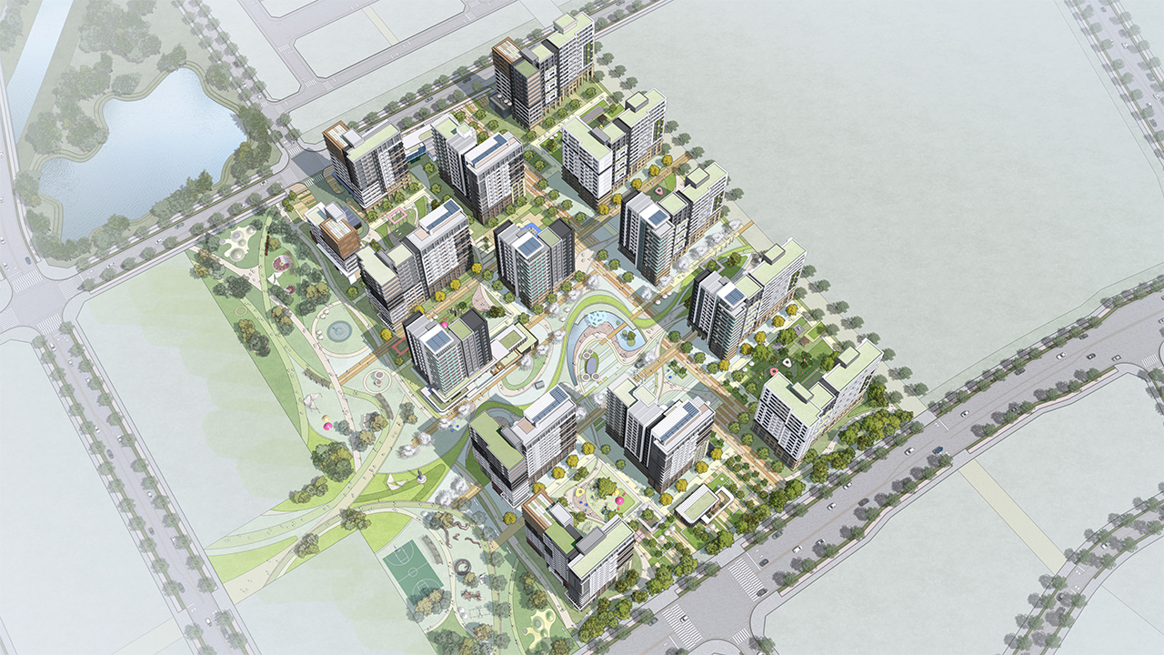 수평적 흐름을 따라 자연이 펼쳐지고 일상에 여유가 흐르는 유기적인 단지