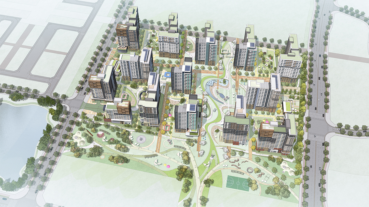 근린공원과 도시의 흐름을 받아들이는 호라이즌 스퀘어를 중심으로 단지를 계획하여 주변과 조화를 이루는 주거단지를 조성하였다. 광장을 중심으로 조성된 가로와 커뮤니티 공간을 통해 주민간의 소통이 이루어지는 활력있는 마을을 구축하였다.